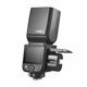 コンパクトなサイズ感ながらもガイドナンバー50 (ISO100/m)の光量を持つ、バッテリータイプの TTL カメラフラッシュです。